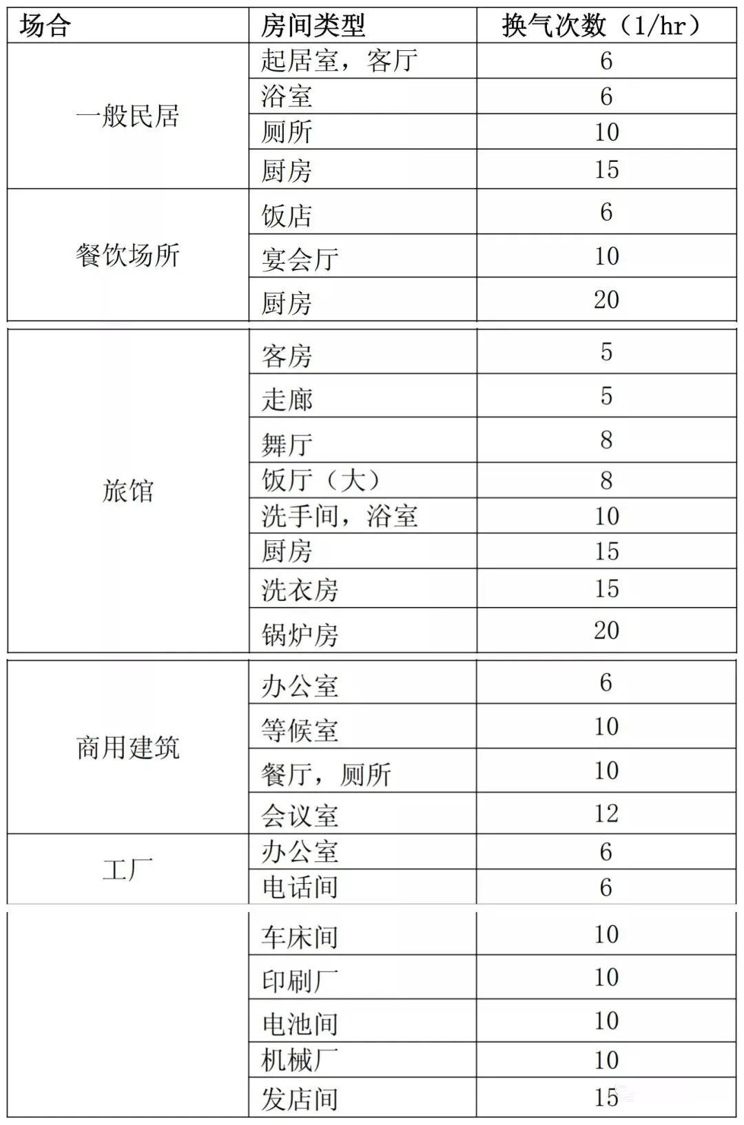換氣次數(shù)的推薦值