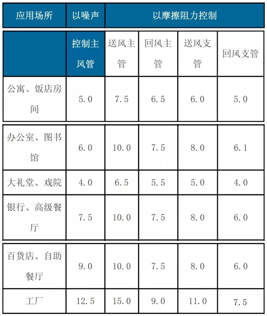 表 3.低速風管系統(tǒng)的最大允許流速 (m/s)